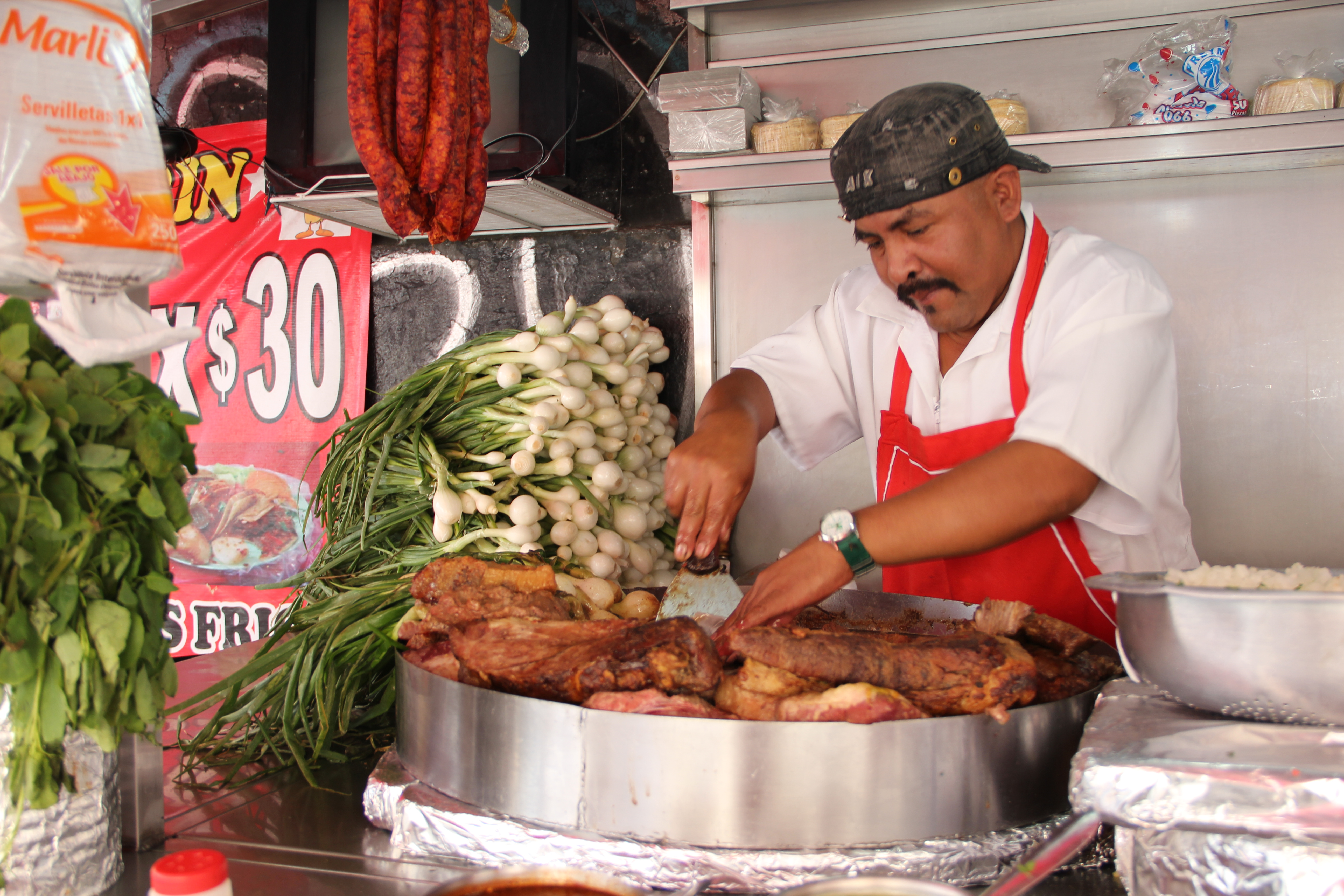 En la ciudad de México las calles están llenas de puestos de comida con clientela, una dinámica que a los extraños nos induce a pensar que los lugareños comen todo el día, sensación que aumenta al ver las cantidades ingentes de menjurjes, carnes y tortillas que ahí se exhiben.