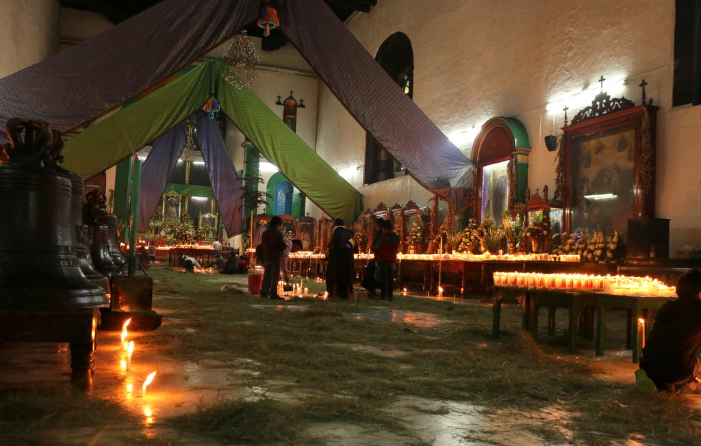 En un día con suerte nuestros vecinos y vecinas podían presenciar cómo Víctor tocaba la mano de su madre y con un leve apretón le indicaba que la virgen había llegado. Entonces mi padre los iluminaba con una luz, que hacía de candileja, con la esperanza de ver algo o alguien; sin proponérselo el efecto dramático ayudaba a que todas nos imaginemos que allí había una señora con manto azul, manos abiertas con el corazón de Jesús palpitante, hablándole a mi hermano.
